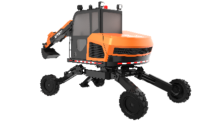 針對山地、高原等復(fù)雜地形場景,研制了輪腿爪高機(jī)動底盤,可實現(xiàn)復(fù)雜地形危險環(huán)境下的有人/無人行駛,實現(xiàn)裝備快速機(jī)動、高位越障、陡坡爬越、斜坡作業(yè)等功能。