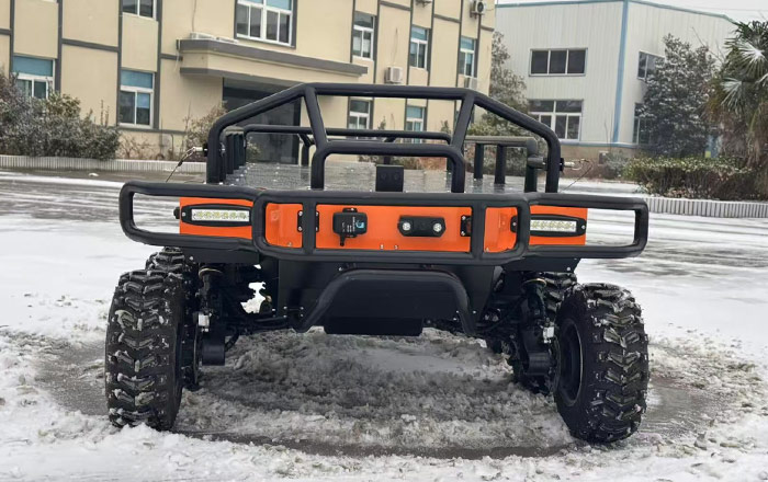 伴隨保障機(jī)器人搭載8×8 全輪驅(qū)動(dòng)底盤,配備獨(dú)立懸架與大花紋越野輪胎,可輕松應(yīng)對(duì)山地、泥濘、荒漠、雪地、叢林等復(fù)雜路況,支持原地旋轉(zhuǎn)功能,最小轉(zhuǎn)彎半徑趨近于零,在狹窄巷道、林間小道、戰(zhàn)場(chǎng)掩體等受限空間內(nèi)也能靈活調(diào)整位置,精準(zhǔn)跟隨保障目標(biāo),避免因地形限制掉隊(duì)。