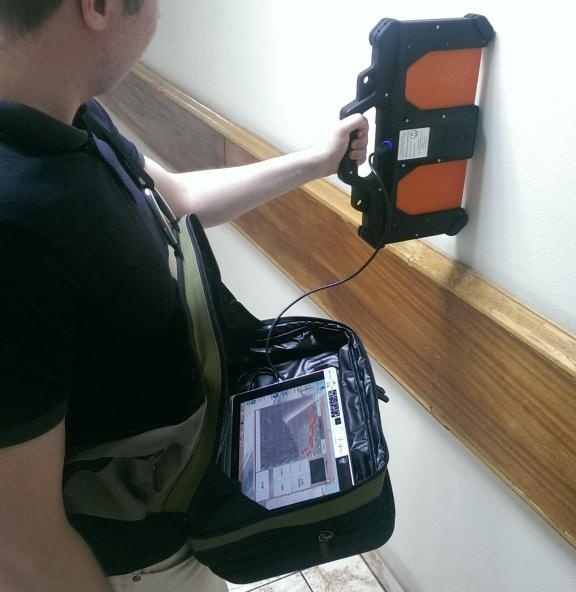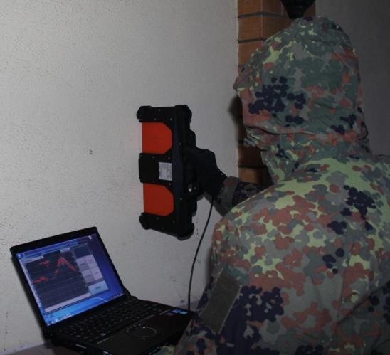 該裝置的操作原理是操作者將天線模塊導(dǎo)向墻壁。 然后即可在計算機(jī)屏幕上觀察當(dāng)物體在墻后移動時反射信號的雷達(dá)圖的變化。