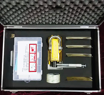 表面采用防爆鋁青銅材質(zhì),內(nèi)部利用超強永磁體對鋼鐵容器的吸附力,通過操縱手柄控制工作面上的磁通量,吸住泄漏的有磁金屬表面,達(dá)到工具和泄漏本體之間的壓合和釋放。仿形壓片,是在墊在磁壓堵漏器本體與泄漏口之間的薄板,用它可彌補二者之間的空隙,減小磁阻,改善堵漏膠的分布狀態(tài)。快速堵漏膠調(diào)均勻后堆向泄漏口,同時扳動通磁手柄,可阻止內(nèi)壓液體流出,讓膠體有時間凝固,數(shù)分鐘內(nèi)膠固化后,堵漏即告完成。堵漏膠和密封劑能承受水、油、液化氣、30%硫酸、30%鹽酸、氫氧化鈉、飽和氯化鈉溶液的侵蝕。