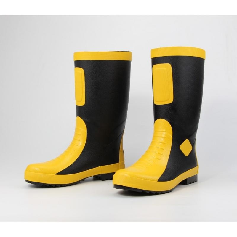 消防員滅火防護(hù)靴主要由大底和靴幫兩部分組成,主題顏色為黑色,配以黃色的圍條、沿條等。整靴均采用多層結(jié)構(gòu)。