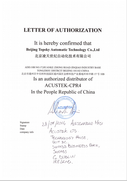 2014年7月28日,北京凌天成為 英國愛爾蘭ACUSTEK 公司 穿墻雷達,門縫窺視儀 一級代理