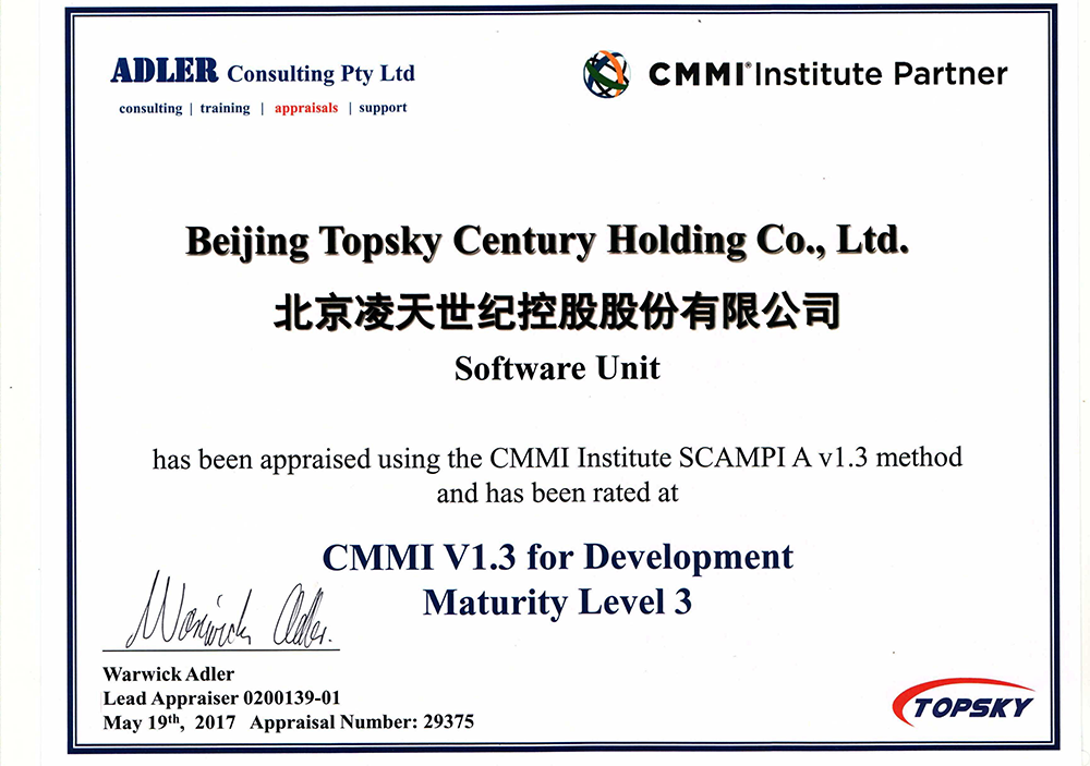CMMI認(rèn)證的取得是北京凌天在高科技裝備發(fā)展的一次重要的里程碑,標(biāo)志著凌天在軟件設(shè)計(jì)、開(kāi)發(fā)、項(xiàng)目管理及為用戶提供高質(zhì)量產(chǎn)品方面達(dá)到了國(guó)際化水平。
