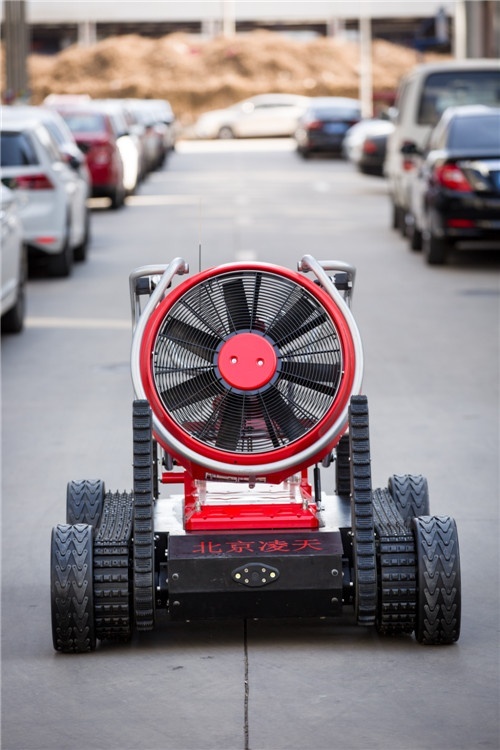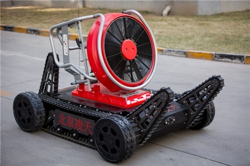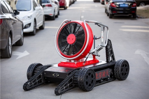 消防排煙偵察機(jī)器人采用履帶+擺臂+輪式的底盤(pán)設(shè)計(jì),裝配大功率水驅(qū)動(dòng)排煙機(jī)。水霧噴射裝置,形成霧化效果。消防排煙機(jī)器人在救援當(dāng)中可深入災(zāi)害現(xiàn)場(chǎng)執(zhí)行排煙降塵、冷卻、送風(fēng)、降低熱輻射等多種作業(yè)。