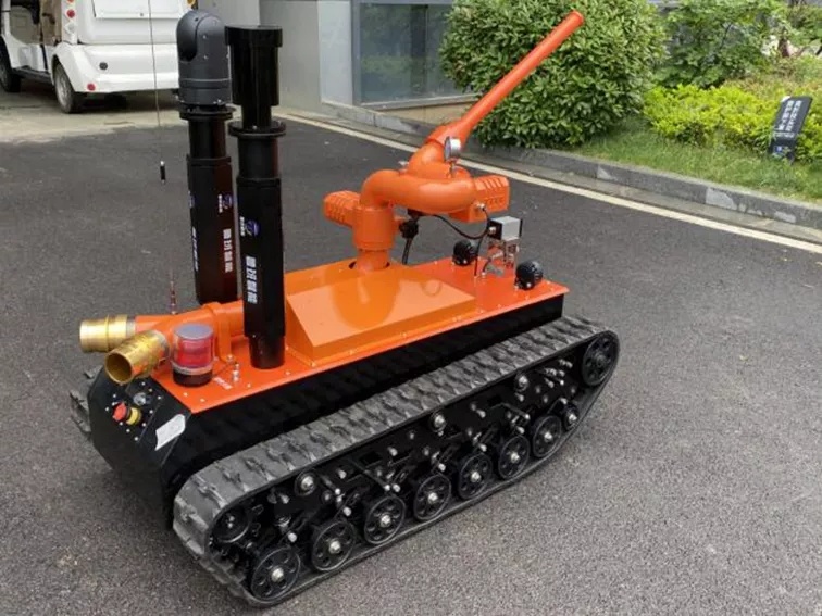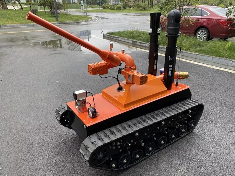 消防干粉滅火機器人作為特噴射種機器人的一種,采用鋰電池電源作為動力電源,使用無線遙控的方式遠距離操控粉劑物料機器人,能夠與粉劑物料車連接,通過噴射粉劑進行滅火等作業(yè)。可使用于各種大型石油化工企業(yè),隧道、地鐵等不斷增多,油品燃氣、毒氣泄漏爆炸、隧道、地鐵坍塌等災害隱患多發(fā)地,滅火機器人在搶險救援中發(fā)揮舉足輕重的作用,主要替代消防員在?;饒龌驖鉄熁馂默F(xiàn)場救援的專用設備