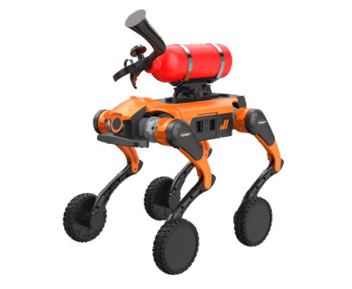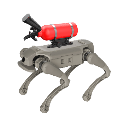 本產品以高性能四足機器狗為搭載平臺,以環保高效的二氧化碳滅火器為核心處置模塊,兼顧機動性、智能性與實用性,既保留了二氧化碳滅火器滅火速度快、無污染、不導電、適用范圍廣的核心優勢,又依托機器狗的全地形通過能力、智能感知能力與遠程操控能力,打破了傳統滅火器“人工攜帶、近距離操作”的局限,實現“遠程部署、精準投送、安全滅火”的作業模式,大幅降低消防作業人員的安全風險,提升火情處置的效率與精準度。