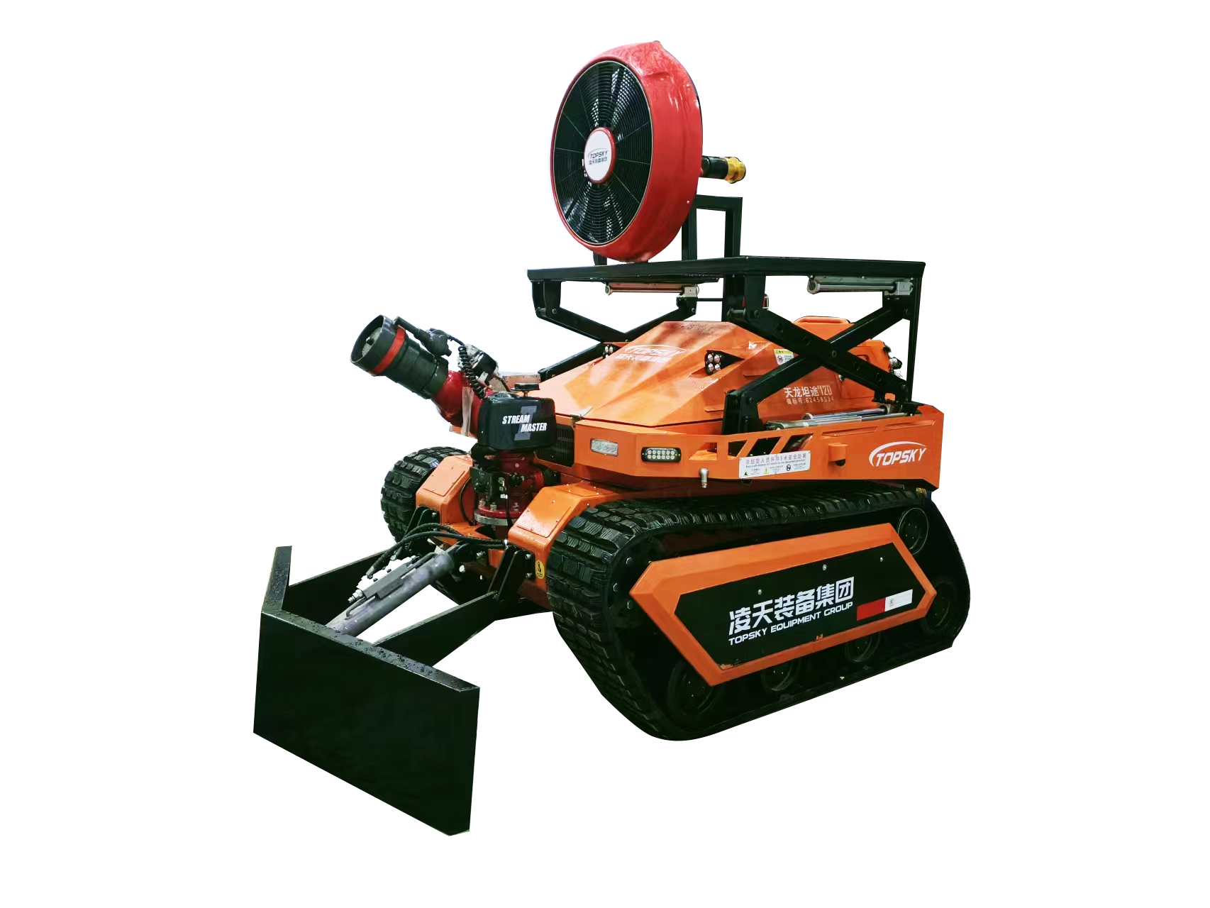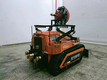 消防排煙滅火機(jī)器人是一款履帶式中型油動(dòng)力消防滅火機(jī)器人,采用柴油發(fā)動(dòng)機(jī)為動(dòng)力,閉式液壓系統(tǒng)驅(qū)動(dòng)ASV橡膠履帶進(jìn)行高速行走,搭載了每秒120升的大流量消防炮,具有60000m3/h的可升降大流量水力排煙機(jī),及V型推鏟,攜帶多種檢測、監(jiān)控傳感檢測裝置,對火災(zāi)場所實(shí)施遠(yuǎn)程實(shí)時(shí)監(jiān)控,進(jìn)行火災(zāi)撲滅、煙霧及有毒有害氣體驅(qū)散,道路開辟清障。