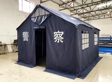 警用帳篷是專為警務工作設(shè)計的臨時遮蔽設(shè)施,通常采用耐磨、防水的耐用面料,結(jié)構(gòu)穩(wěn)固,能適應多種戶外環(huán)境。它可快速搭建與拆卸,內(nèi)部空間可根據(jù)需求靈活規(guī)劃,滿足臨時辦公、人員休整、物資存放等基礎(chǔ)功能,為各類警務執(zhí)勤、應急處突等場景提供基礎(chǔ)保障。