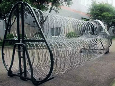 刀片鋒利,阻隔性強,不借助器械難以攀爬、翻越。整體結(jié)構(gòu)穩(wěn)定,兩端為支撐框架結(jié)構(gòu),伸縮網(wǎng)和框架一體式聯(lián)接。部分產(chǎn)品底部可能帶有橡膠滾輪,可萬向調(diào)節(jié)推動,移動方便。
