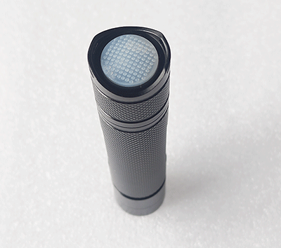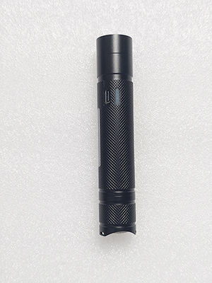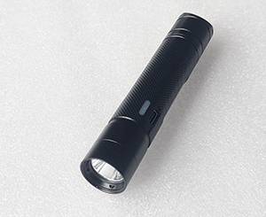 直筒圓柱形結(jié)構(gòu),尾部開關(guān)具有方位燈功能;光源采用LED光源,具備強(qiáng)光、弱光、爆閃光可切換功能。