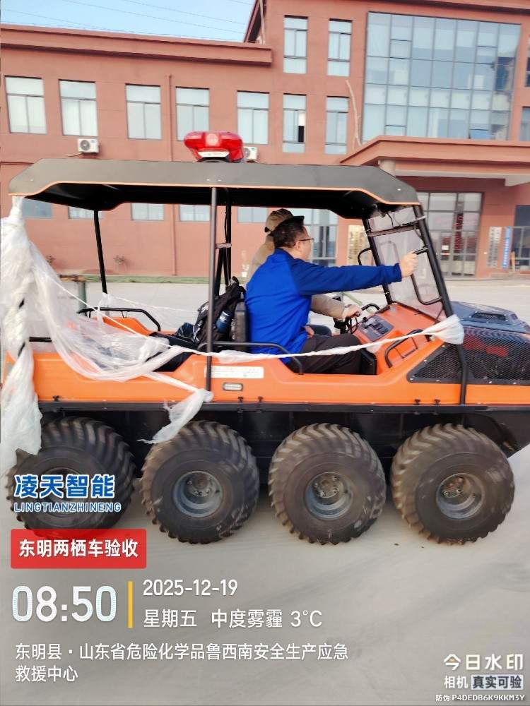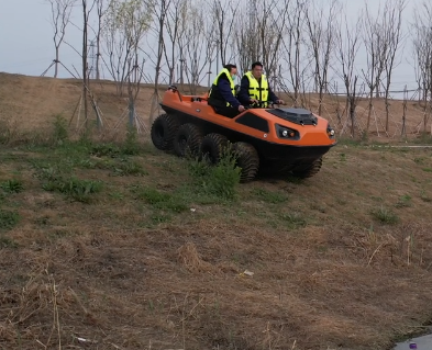 以完成可靠的野外應(yīng)急救援為目的,該水陸兩棲全地形車可提供一種安全的運輸方式和可靠的運載平臺,產(chǎn)品可以在山地環(huán)境、濕地環(huán)境、沼澤環(huán)境、水面環(huán)境、叢林環(huán)境等多種工作環(huán)境下,實現(xiàn)全天候連續(xù)作業(yè)。并且可以在災(zāi)害現(xiàn)場巡邏勘察、運送受傷人員、并有效實施援救。