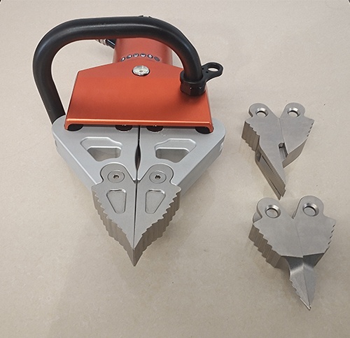 7.標(biāo)配開(kāi)門(mén)開(kāi)縫、撕裂兩套多功能工具頭,可根據(jù)實(shí)際救援情況隨意更換。開(kāi)縫最小插入間隙為2mm,撕裂工具頭可手動(dòng)戳穿3mm的Q235A金屬板。