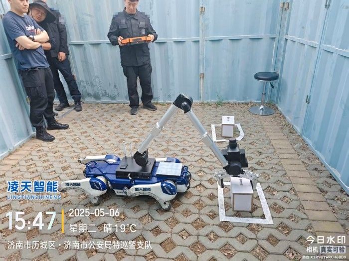 6自由度排爆機(jī)械臂能實現(xiàn)不同角度旋轉(zhuǎn),最大可抓舉10kg的重物,機(jī)械臂裝載爆炸物銷毀器,可現(xiàn)場摧毀爆炸物,四足式底盤,能適應(yīng)各種地形快速作戰(zhàn)部署。