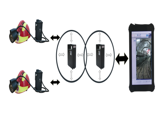 該系統(tǒng)采用無線通信網(wǎng)絡(luò)采用自組織、自愈合方式快速形成多跳鏈狀或網(wǎng)狀網(wǎng)拓?fù)浣Y(jié)構(gòu),無線通信距離不小于2000米,具有快速部署、高帶寬、低時(shí)延、可靠性強(qiáng)等特點(diǎn)。井下救援人員或工作人員,通過佩戴礦用本安型平板計(jì)算機(jī)、配套的低照度攝像頭自帶語音通話、無線中繼器等裝備,將現(xiàn)場的實(shí)時(shí)圖像、語音等信息實(shí)時(shí)回傳到指揮平臺(tái),調(diào)度指揮人員可以實(shí)時(shí)了解現(xiàn)場情況,并對(duì)現(xiàn)場人員進(jìn)行調(diào)度指揮。