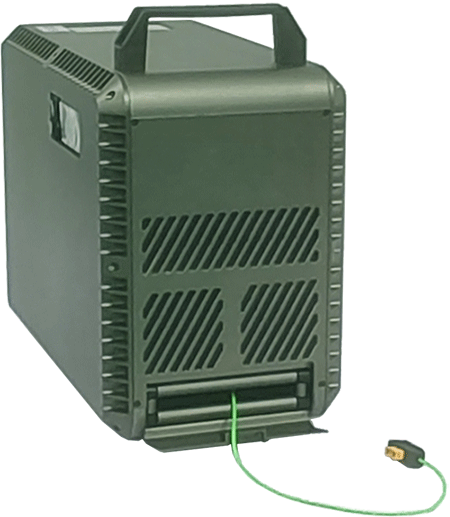 機(jī)載系留電源箱是一種向工作在高空的照明無人機(jī)提供電力的供電系統(tǒng),系統(tǒng)由系留電源箱、機(jī)載模塊組成,通過地面系留供電系統(tǒng)源源不斷輸送電力,可實(shí)現(xiàn)24小時(shí)不間斷滯空,懸停,解決了常規(guī)無人機(jī)續(xù)航能力不足的難題,在救災(zāi)搶險(xiǎn),電力搶修等一些突發(fā)情況中發(fā)揮了重要作用。